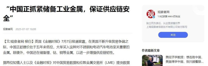 当美国依旧在关税战中苦苦挣扎时,中国已经用资源、科技与军事构筑起了一道坚固的“防冲击墙”。这盘棋,真正的高手从不单纯看眼前的得失,而是着眼于长远的战略布局。